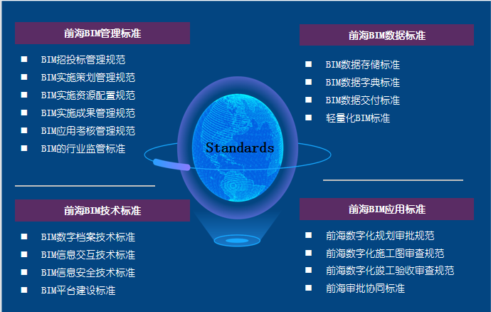 该项目依照具有智慧城市高度的《前海BIM应用推广发展规划》(国内首部从城市管理者视角出发的BIM发展规划,曾获2021年度第十二届“创新杯”智慧城市与可持续发展类 “特等奖”殊荣),在前海区域级“6+4+4+4”BIM标准体系(管理标准、数据标准、技术标准、应用标准)以及前海建投集团企业级BIM标准的基础上,于项目初期便进一步搭建了适合项目本身的标准体系,包括BIM交付标准、BIM模型标准、BIM质量标准。各项健全的BIM顶层设计与标准体系为项目实施保驾护航。